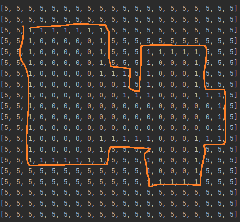 field[i][j] = 1 # 테투리랑 내부랑 겹치면 그건 내부
