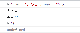 - 역시나 특정 키값을 인자로 넣어서 해당 값만 삭제할 수 있다.